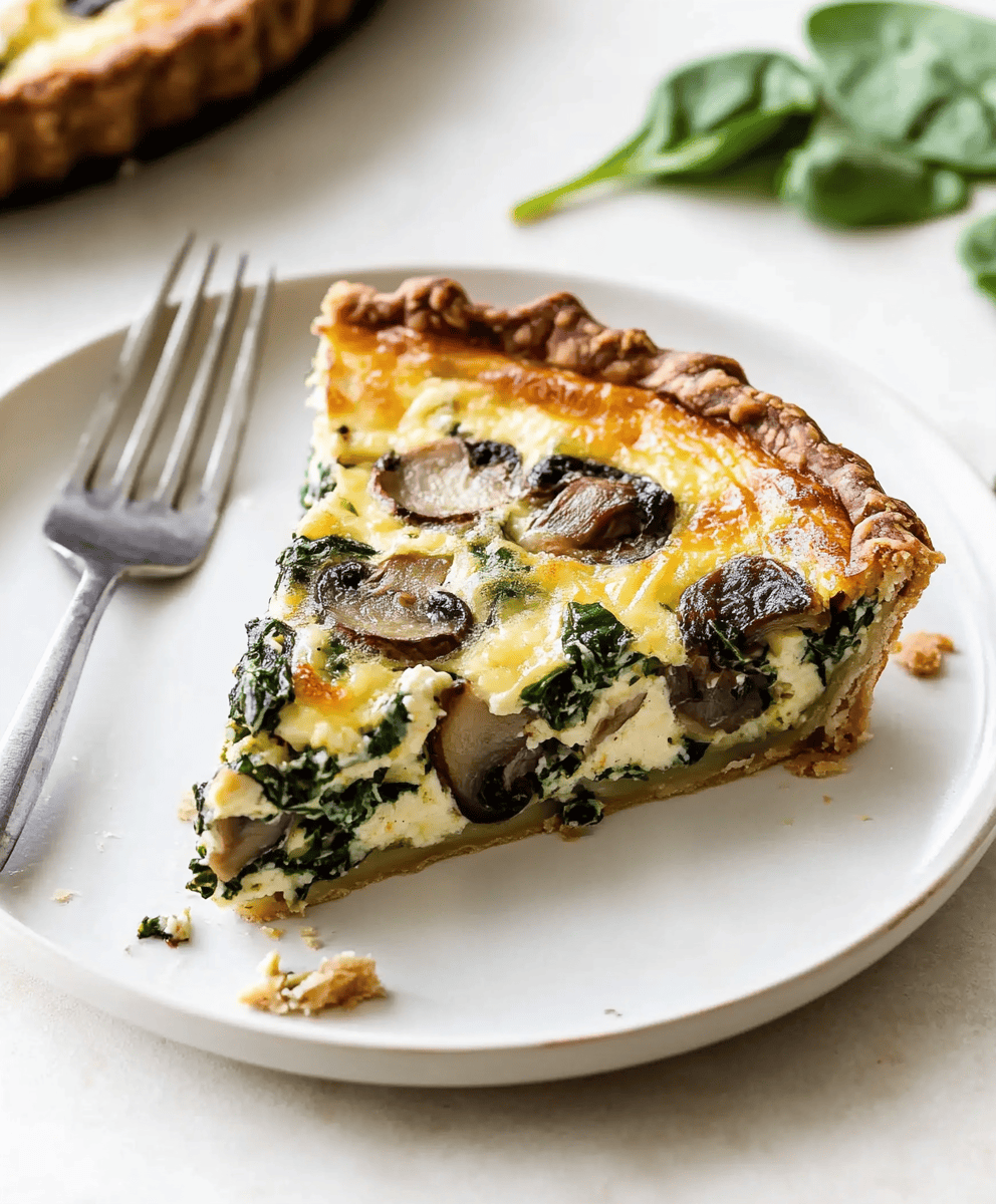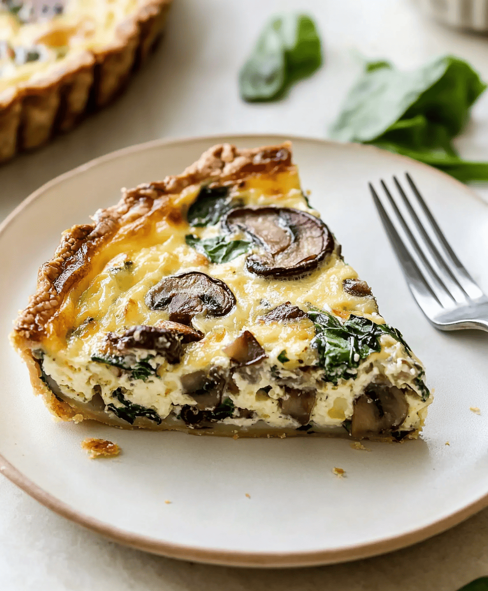 I first made this quiche on a lazy Sunday morning when I had a fridge full of odds and ends and a craving for something cozy but not too heavy. With its golden flaky crust, tender mushrooms, savory spinach, and creamy, cheesy custard, it quickly became a household staple. It's the kind of dish that looks like you fussed but really didn't—always a win in my book.