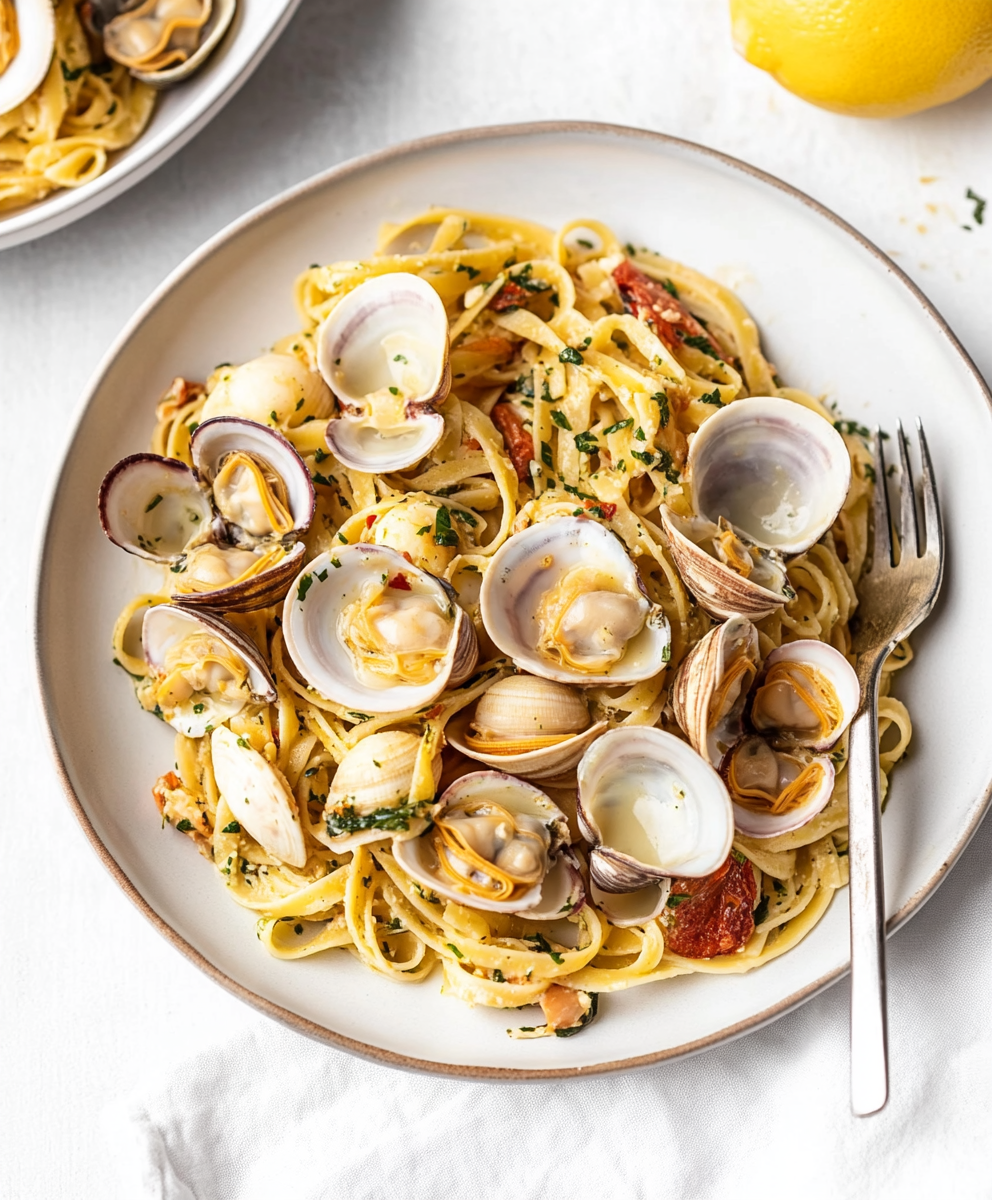 Fresh clams are the heart of this dish. I recommend using littleneck clams for their mild flavor and tender texture. Be sure to clean them thoroughly before cooking—nothing ruins a silky pasta like unexpected grit. If fresh clams aren’t available, high-quality frozen clams in the shell can be a decent substitute.