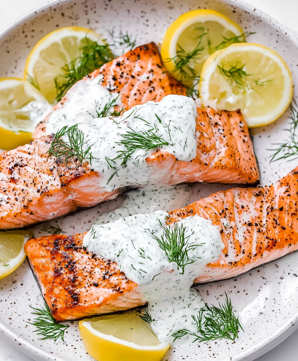 Enjoy a healthy and flavorful summer seafood dish with this grilled salmon recipe topped with a refreshing dill sauce. This light and nutritious meal is easy to prepare and perfect for outdoor grilling. Ideal for warm-weather dinners, this salmon recipe features simple ingredients and bold, fresh flavors. Great for seafood lovers, low-carb eaters, and summer gatherings.